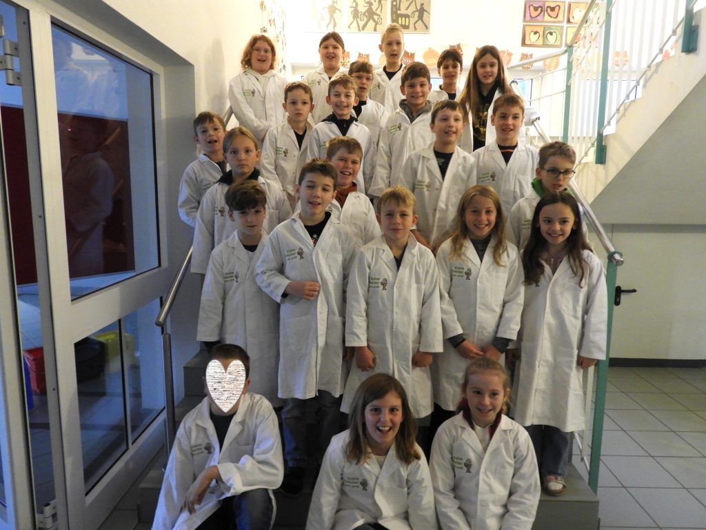 Anschließend durften die Kinder ihre „Forschermäntel“ anziehen und in verschiedenen Stationen zum Thema Mechanik tolle Experimente durchführen.